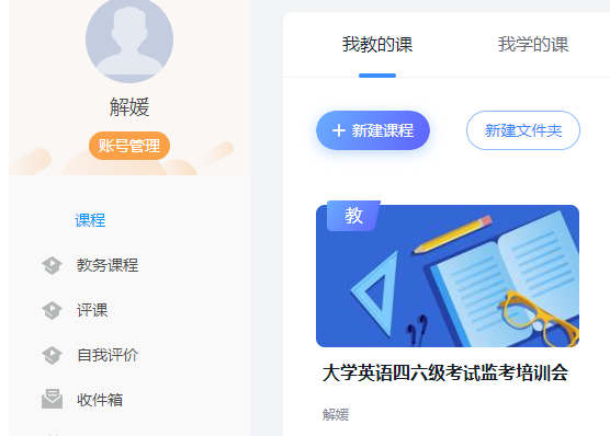 ③登录后点击左侧列表中的“课程”-“我学的课”-“大学英语四六级考试监考培训会”-“章节”-“监考培训”,即可开始学习。