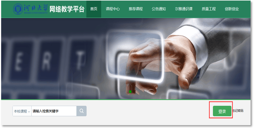 ①打开网址:hbu.fanya.chaoxing.com,进入学习课程中心;点击“登录”按钮进入登录页面。