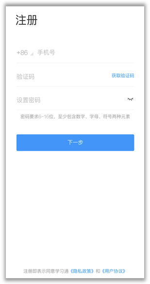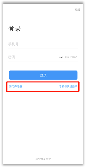 ②注册登录:进入APP后,在登录页面点击“新用户注册”,或者“手机号码快捷登录”,进行手机号注册登录。(如已注册并绑定工资号,请忽略此步骤)