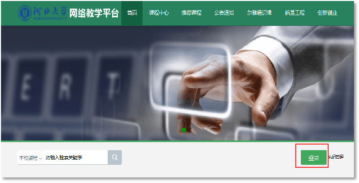 ①打开网址:hbu.fanya.chaoxing.com,进入学习课程中心;点击“登录”按钮进入登录页面。