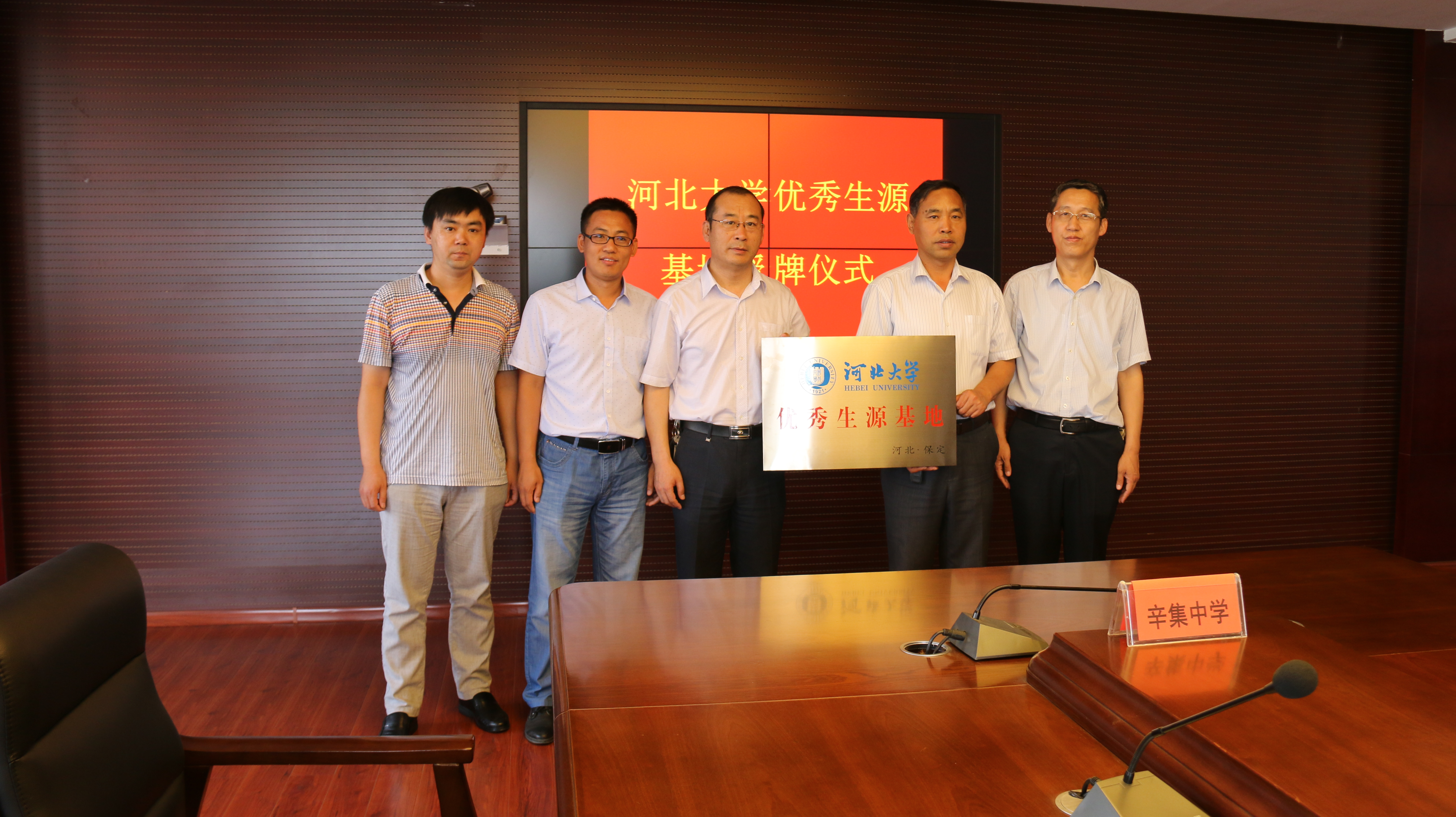 为进一步拓展建设河北大学优秀生源基地,加强我校与省内示范中学的交流与沟通,提升学校影响力,吸引更多优质生源,受学校教务处委托,6月15日和6月22日,物理科学与技术学院党委书记刘爱欣带队分别赴邢台市和辛集市,在邢台第二中学和辛集中学举办河北大学“优秀生源基地”挂牌仪式,并与邢台第二中学刘运波副校长、辛集中学党委书记李敬考等负责人进行了座谈,对两所中学为我校输送优秀生源表示感谢,简要介绍了河北大学和物理科学与技术学院在本科专业、师资队伍、人才培养上的特色和优势。双方共同希望以“优秀生源基地”的建立为起点,在“专家讲座、优秀学子宣讲、大学夏令营、中学教师进修” 等方面开展合作。