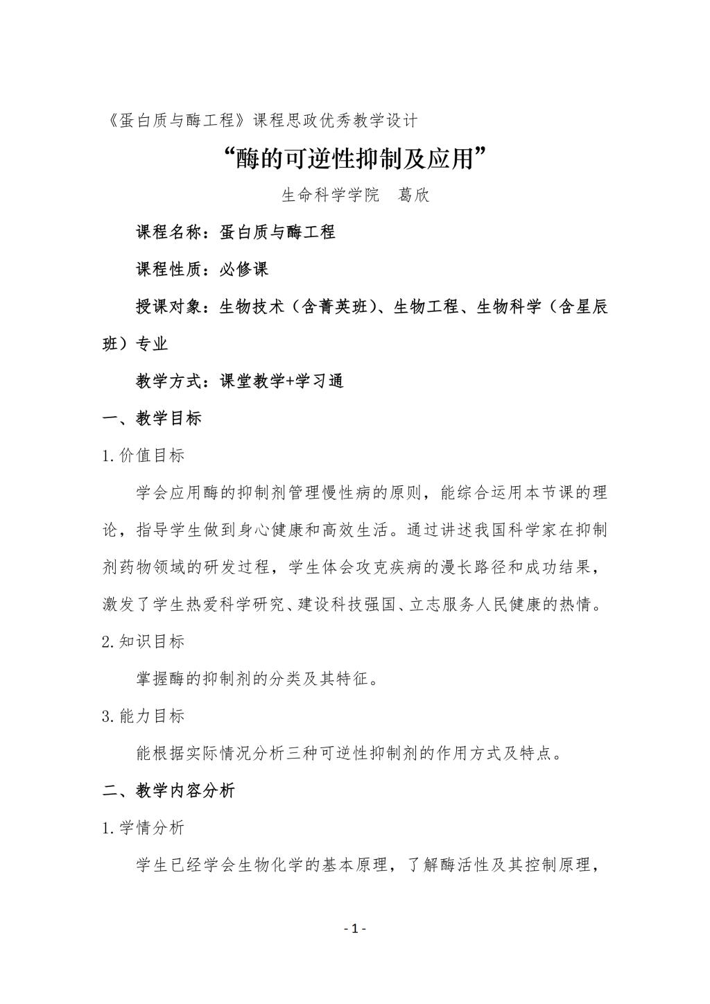 上一条:[课程思政优秀教学设计]“生物多样性教学设计” 下一条:[课程思政优秀教学设计]青蒿素类抗疟药物分析课程中屠呦呦科学探索精神的学习